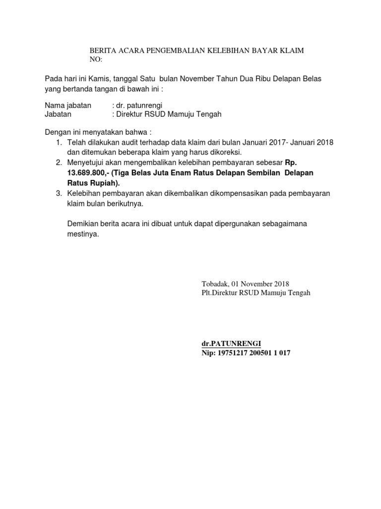 Berita Acara Pengembalian Kelebihan Bayar Klaim November
