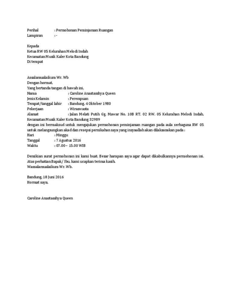 Contoh Surat Permohonan Peminjaman Ruangan Nikah