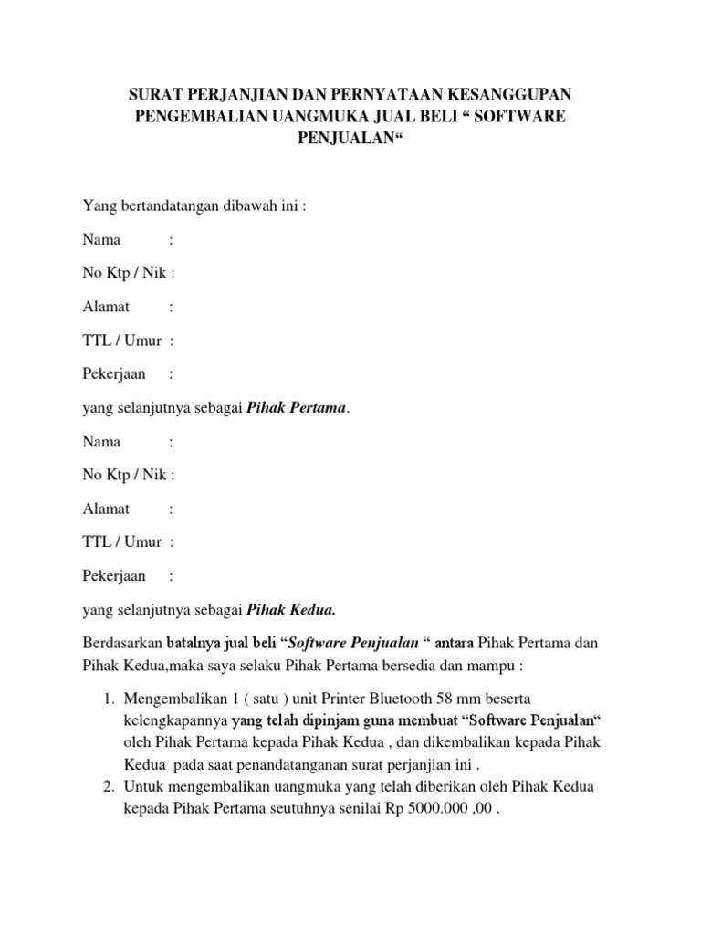 Contoh Surat Perjanjian Jual Beli Rumah Dengan Uang Muka Doc Content